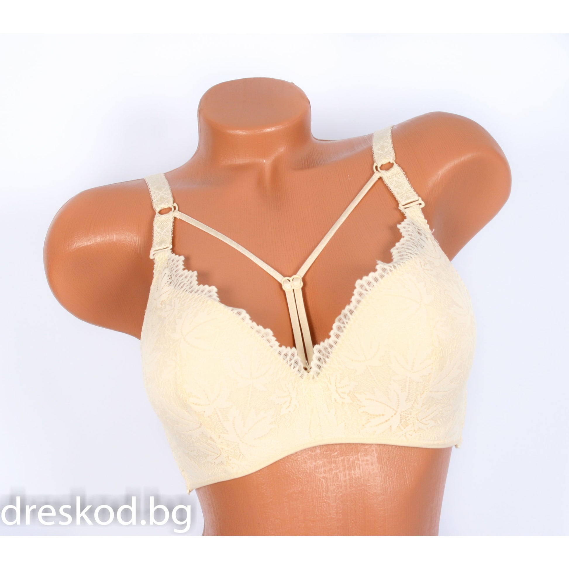 - Περιγραφή: Σουτιέν με δαντελένια ανυψωτικά μαξιλαράκια, λεπτομέρειες μπούστου, διακοσμητικό στοιχείο ανάμεσα στις κούπες, άνετο λάστιχο και τιράντες.